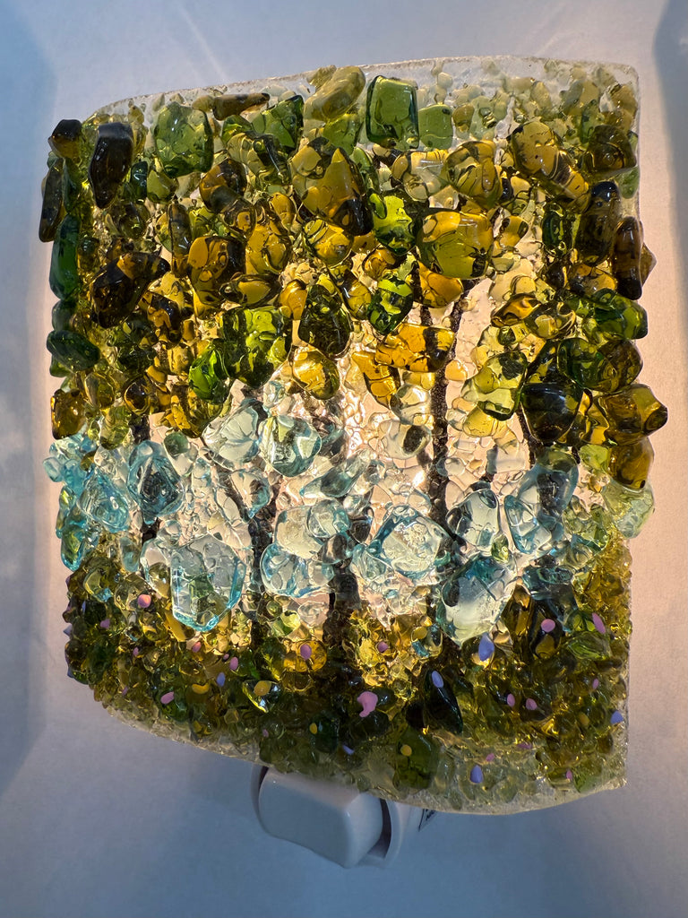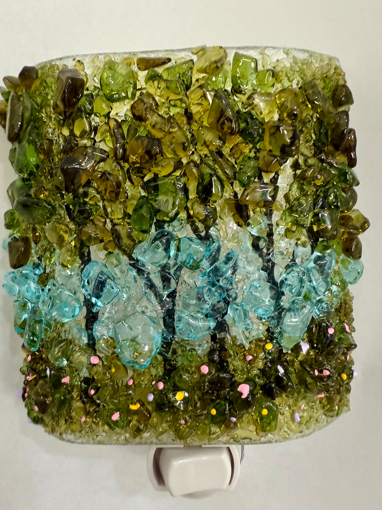 Celebrate the height of the season with our Summer Woods nightlight — a bright, joyful tribute to wildflower meadows and sun-drenched forest paths. Handcrafted from recycled Bombay Sapphire gin and wine bottles, this piece glows with vibrant blue and green tones that echo the lush energy of summer.